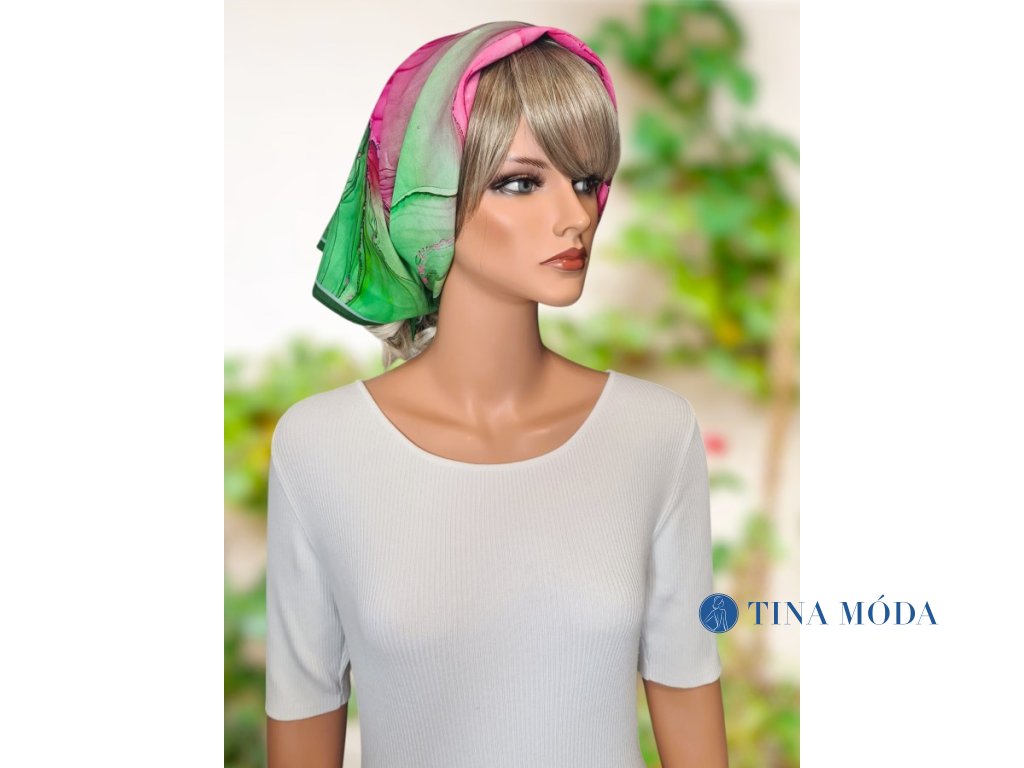 Bavlněný šátek v duhových zelených a růžových barvách