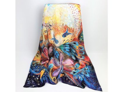 Krásná kombinace kontrastu barev a letním tématem moře, jako jsou mušle, škeble a kompas, který vám třeba najde cestu ... Šátek můžete kombinovat k šatům, riflové bundě i saku, nejen k business outfitu, ale i ležernímu stylu ... fantazii se meze nekladou. Materiál je na kůži velice příjemný. Praní viz. etiketa údržby.
