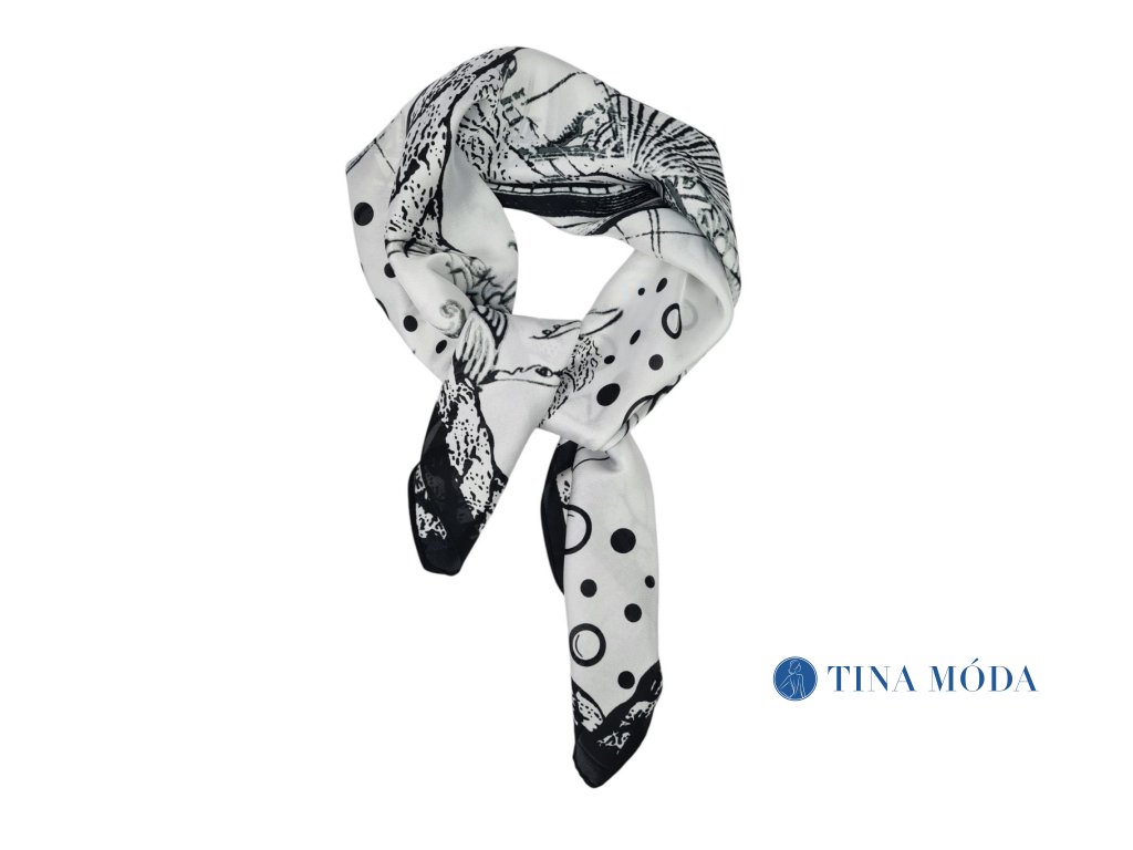 Bílý šátek s mořským černým motivem - mušle, komplas
