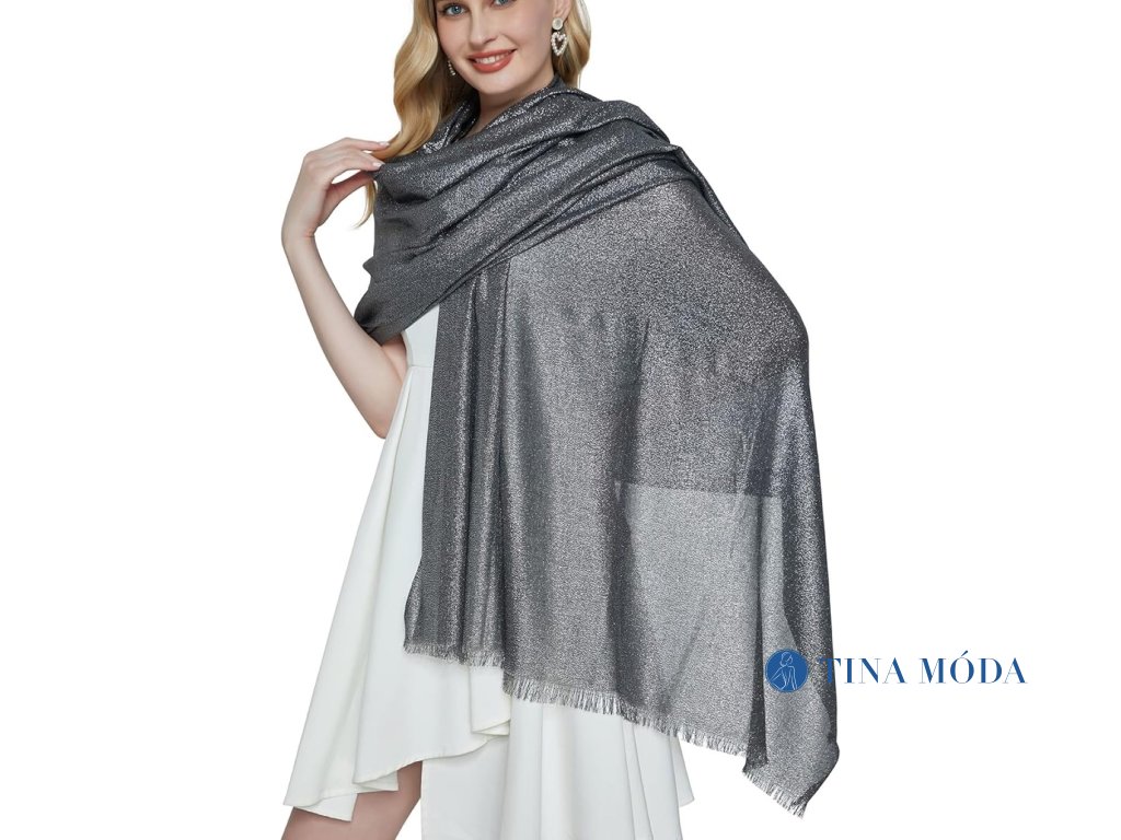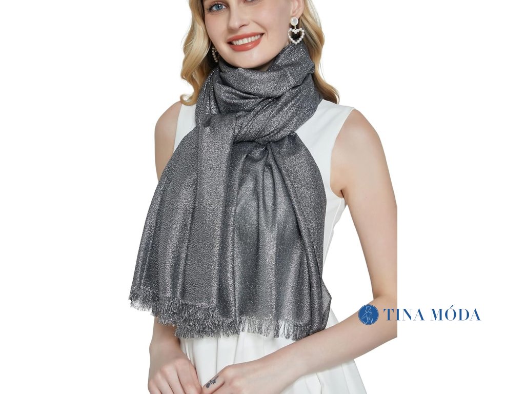 Slavnostní šála s kovovým stříbrným leskem, jednobarevná