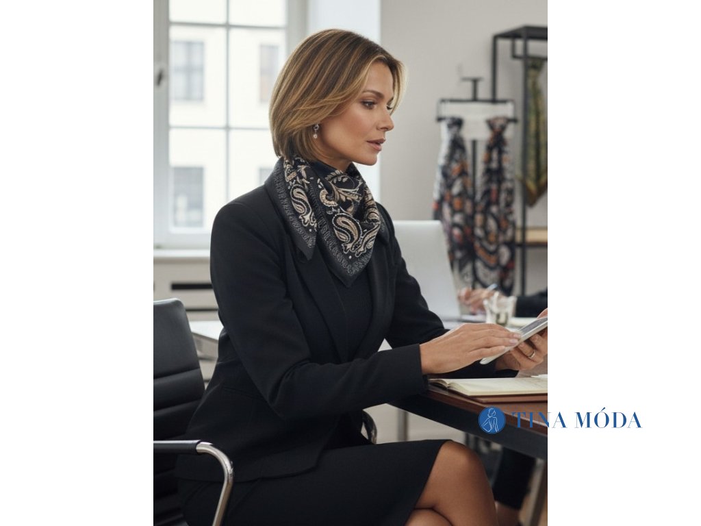 Elegantní a luxusní hedvábný šátek v černé, čtvercový ze 100% pravé hedvábí