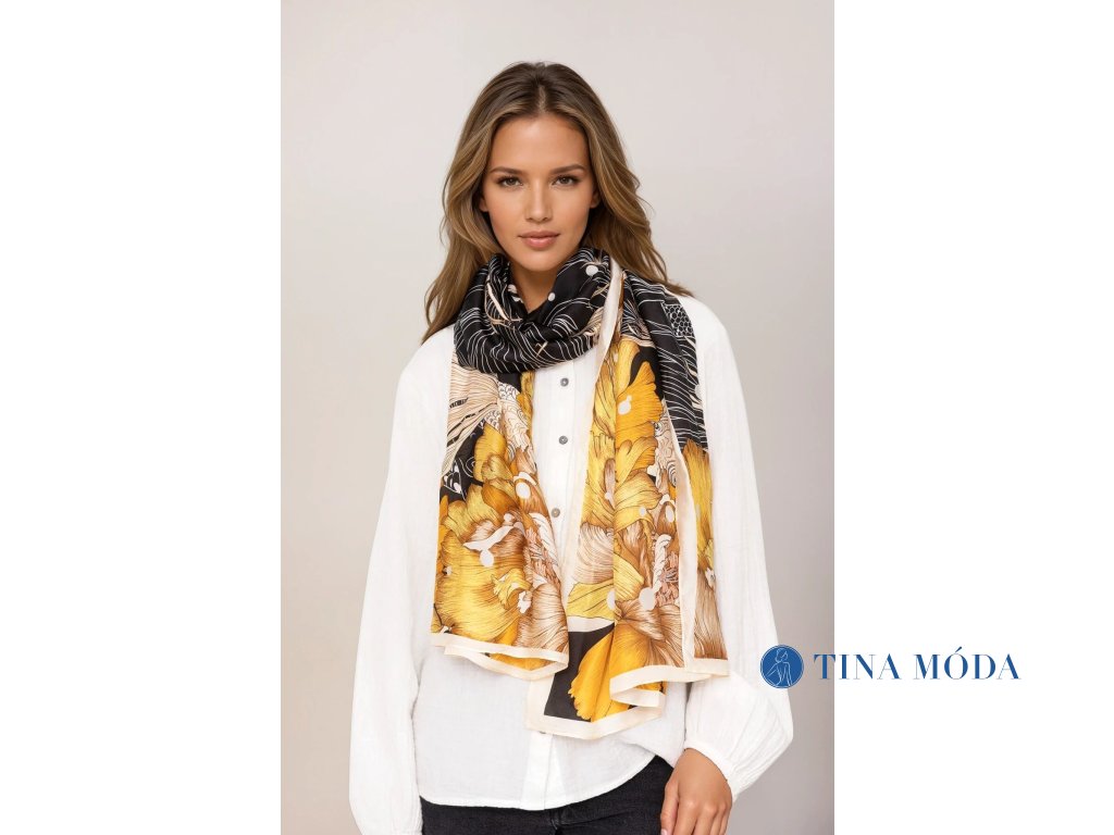 Vzorovanou šálu v kontrastních tónech můžete nakombinovat k vašemu outfitu do práce i zahradní party. Nejen na krk nebo jako pareo, přehoz / pléd přes ramena ... fantazii se meze nekladou. Materiál je příjemný na kůži a jemný na omak. Praní viz. etiketa údržby.