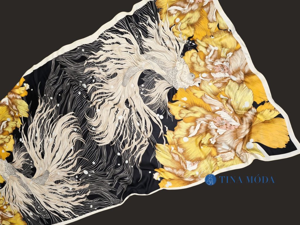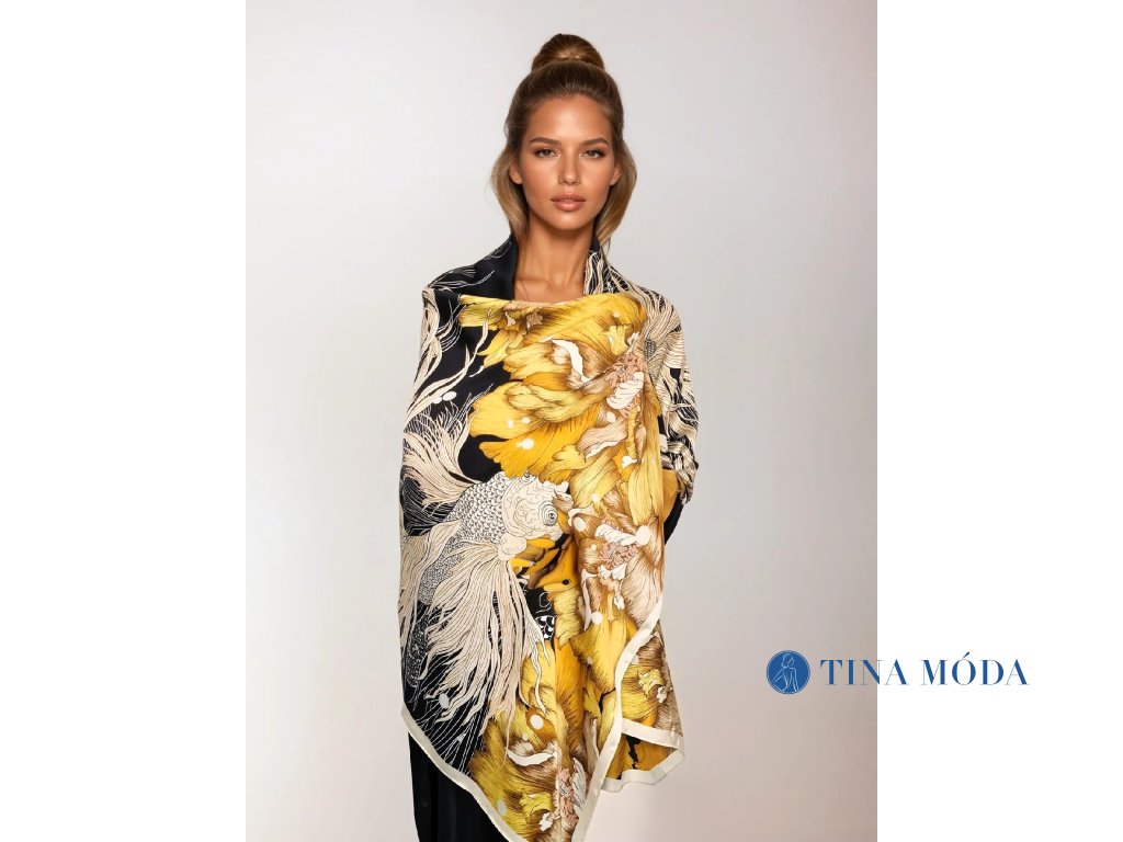 Dámská černá šála v kontrastu se žlutou Zlatá rybka
