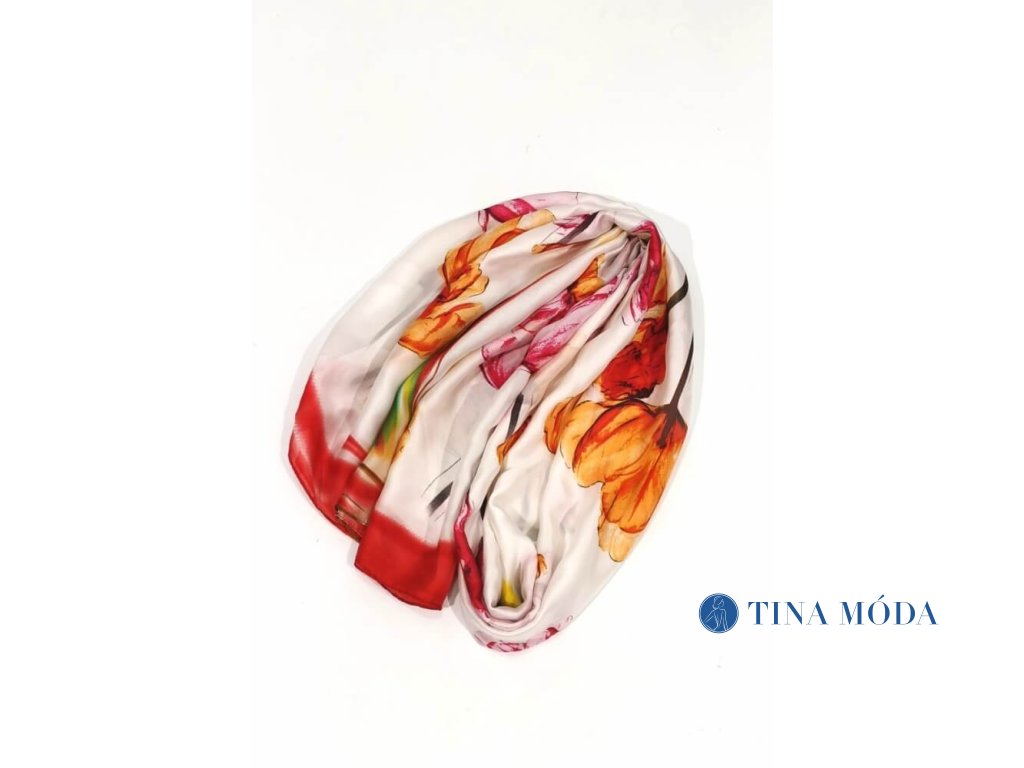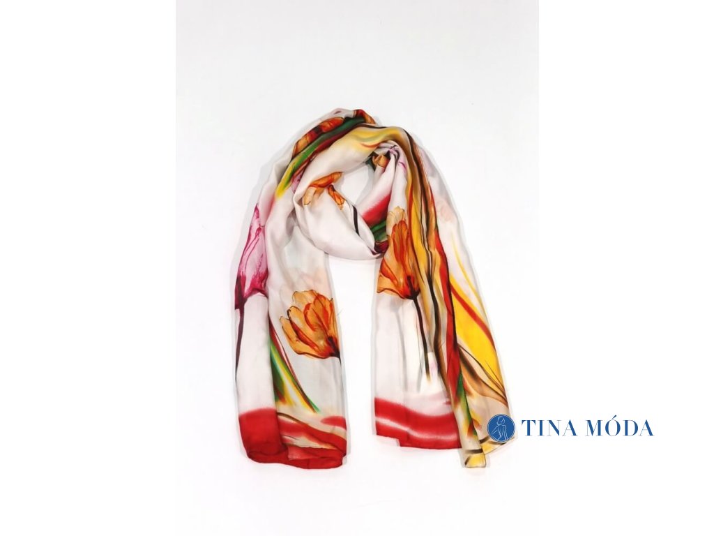Dámská hedvábná květovaná šála s viskózou bílá s růžovými květy tulipánů 180x90 cm
