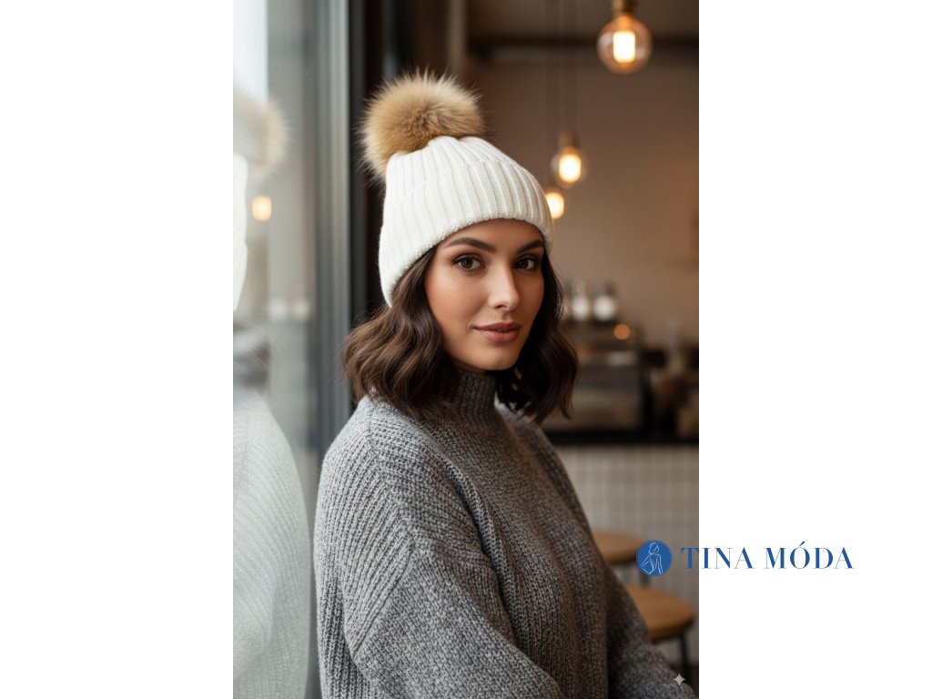 Jednobarevená dámská čepice, která je zdobena kožešinovou mývalí bambulí, která se dá jednoduše odepnout, jelikož je přichycena patentem. Jemné přírodní barvy, které jsou elegantní a sluší každé ženě.