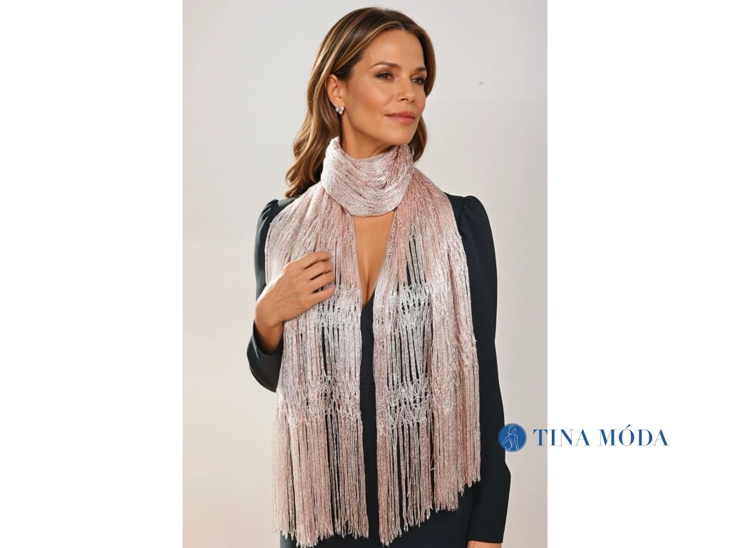 Třpytivá šála na krk, slavnostní pléd přes šaty zdobeně pletená
