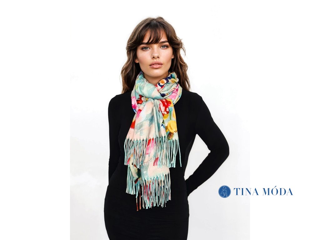 Jemná a měkká šála ve veselých barvách a krásným barevným vzorem, zaviňte se do veselých barev. Šála je příjemná a nekouše, zdobena třásněmi a lze ji nosit oboustranně. Krásný a luxusní doplněk k saku, kabátu i bundě. V zimě nebo na podzim zahřeje u krku, můžete použít, i jako pléd přes ramena na párty a jiné oslavy. Materiál je příjemný na kůži, měkký - nekouše. Praní viz. etiketa údržby.