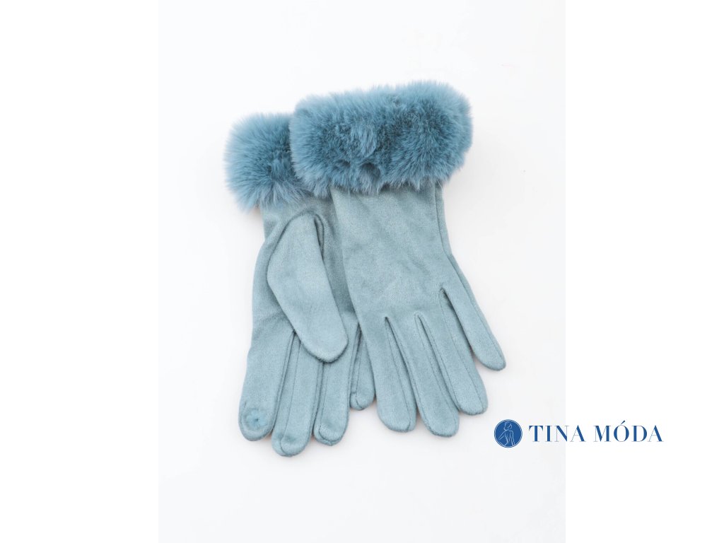 Elegantní modrozelené - tyrkysově modré rukavice, které jsou zdobeny kožešinou ve stejné barvě a na obou ukazováčcích mají Touch Screen, kterým můžete ovládat mobil.
