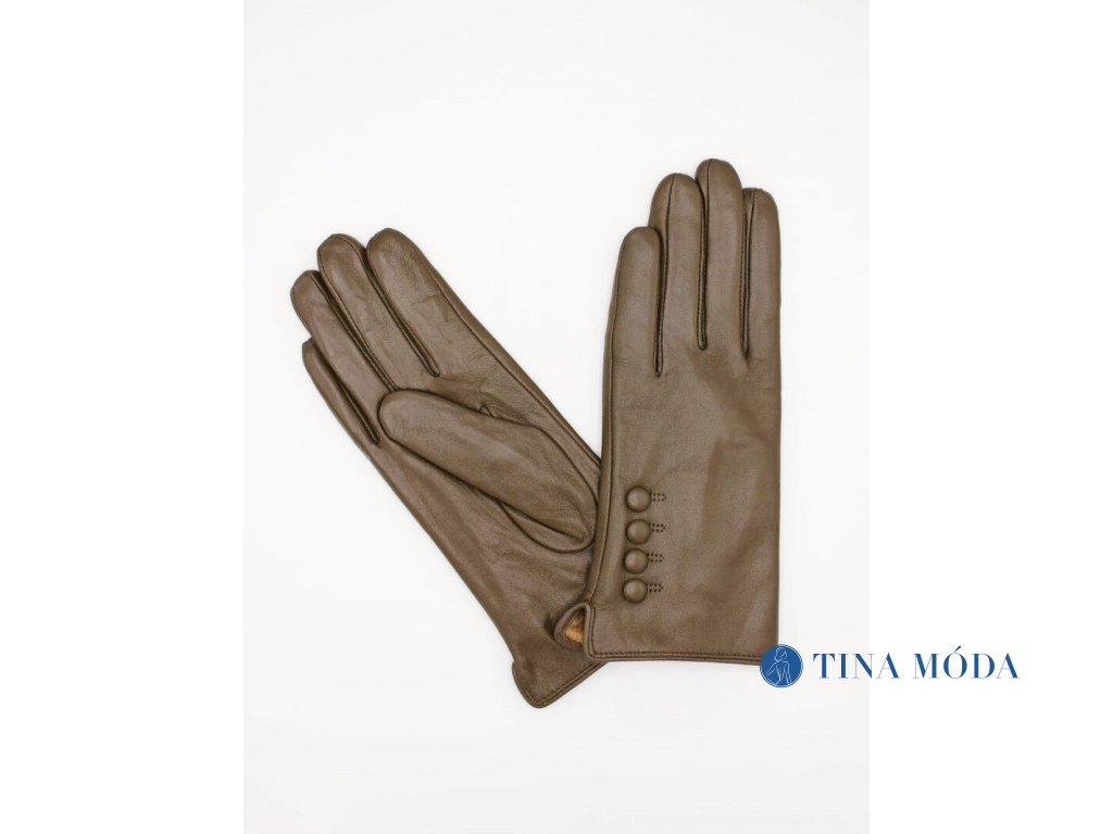 Dámské teplé zdobené kožené rukavice čokoládově hnědé s knoflíčky z pravé kůže jehnětina