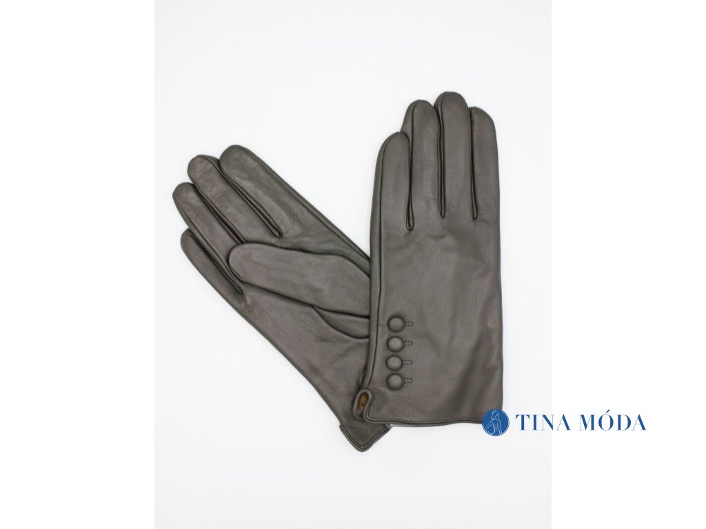 Dámské teplé zdobené kožené rukavice šedé s knoflíčky z pravé kůže jehnětina