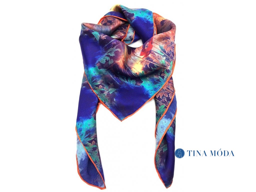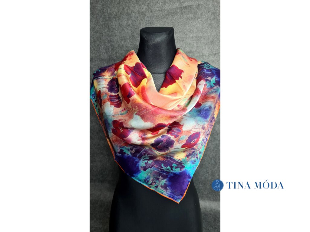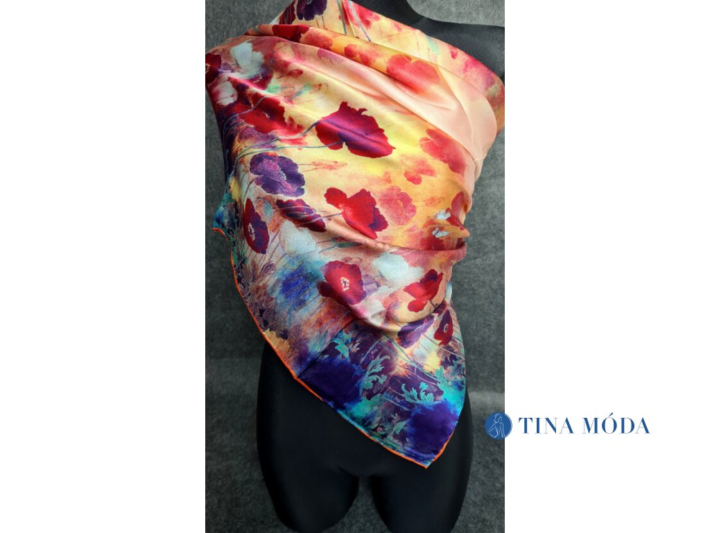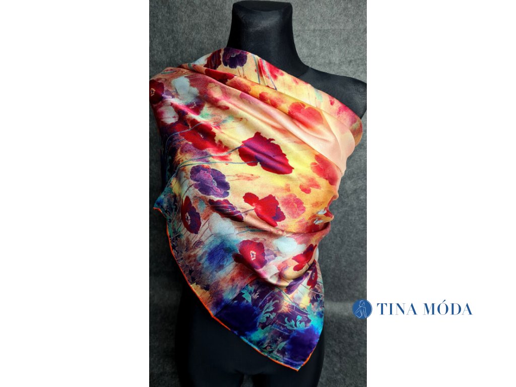 Dámský hedvábný květovaný šátek šála vlčí máky 100% hedvábí oranžová červená modrá