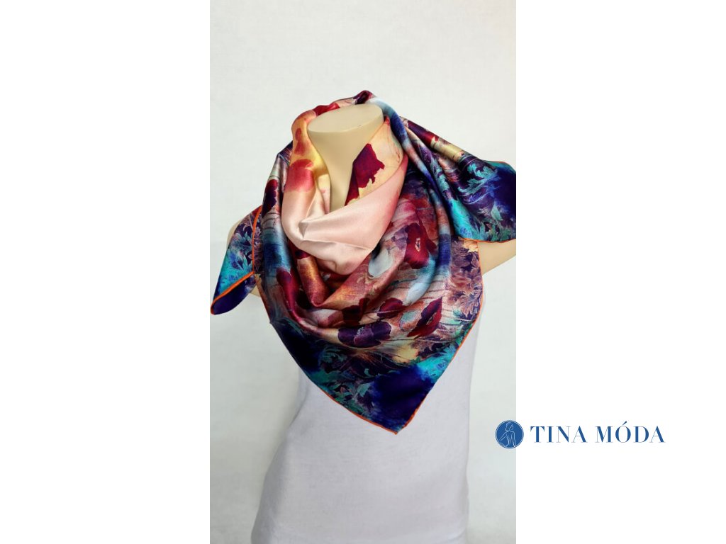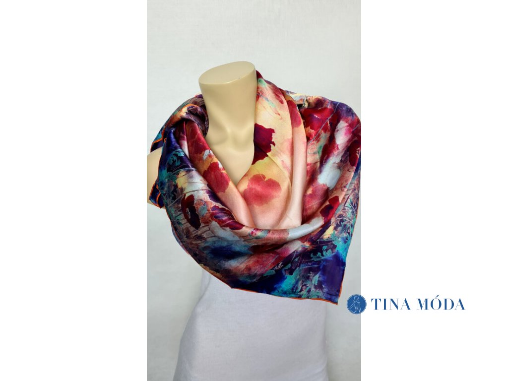 Luxusní jemný hedvábný šátek šála 100% čisté hedvábí čtvercový - vlčí máky, květiny a motýli