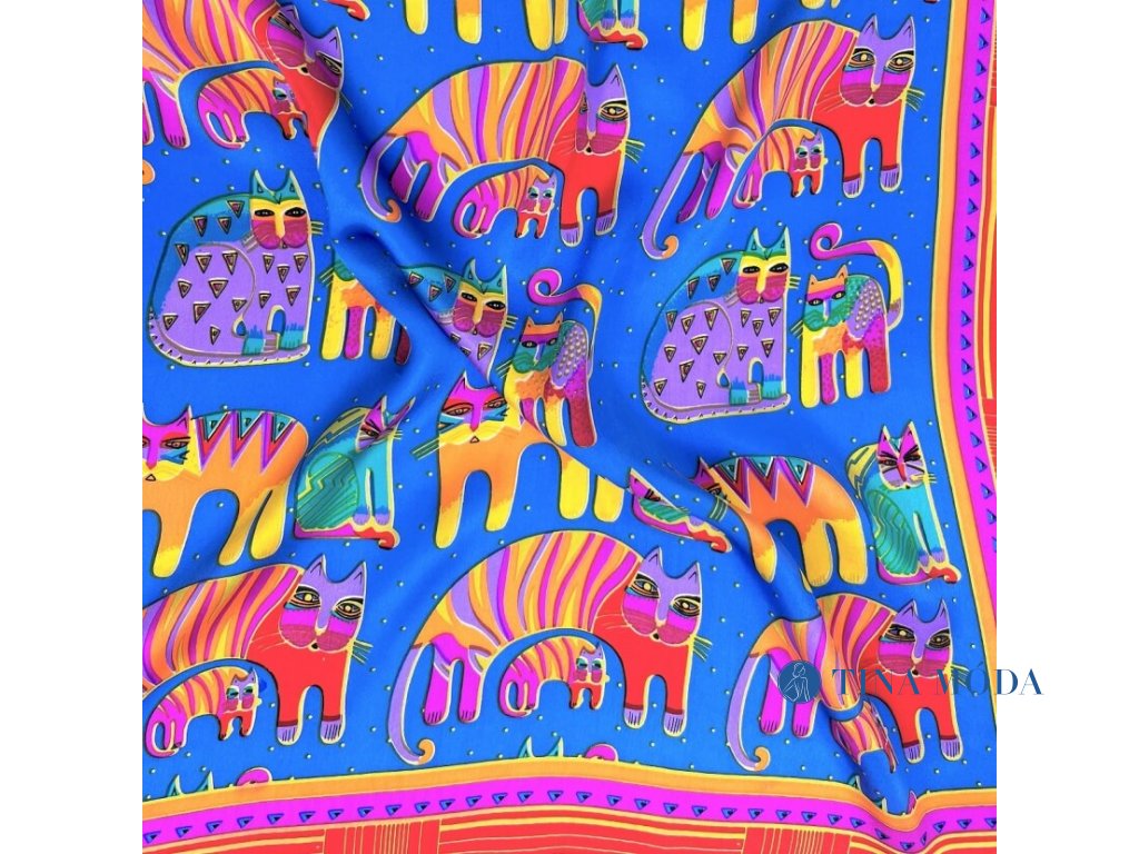Luxusní letuškový hedvábný čtvercový šátek - kočky