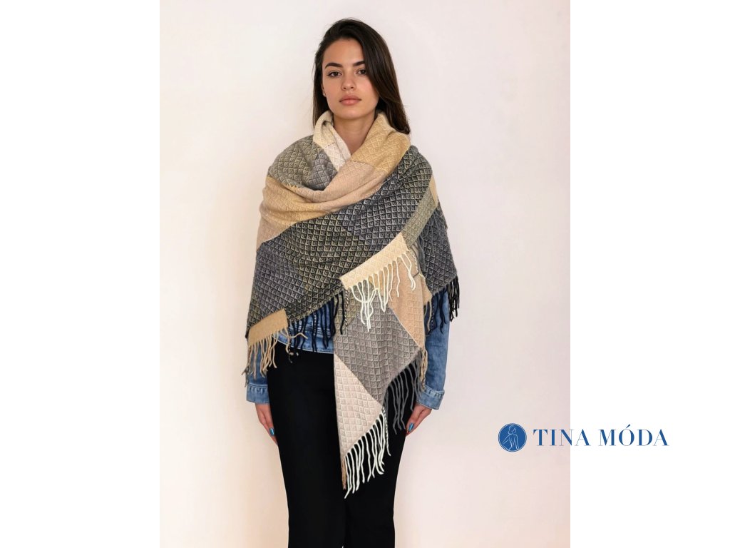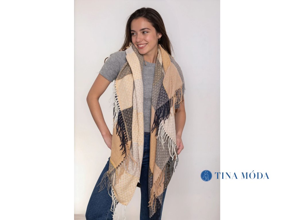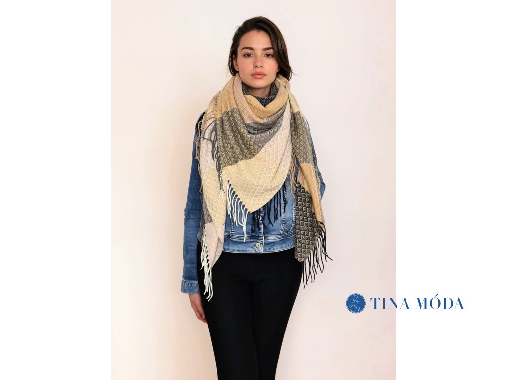 Extra velký čtvercový šátek, do kterého se můžete zahalit, aby vám bylo příjemně teplo až začne foukat severský vítr. Zemité hnědé odstíny, které už jen svým odstínem zahřejí. Stále oblíbený vzor kostka, která tu bude i další módní sezónu, jednoduché a elegantní ke kabátu i bundě.