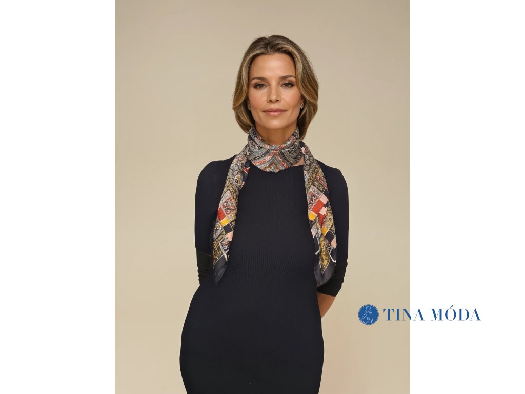 Vzorovaný šátek v tlumených šedých tónech můžete nakombinovat k vašemu outfitu nejen do práce nebo až půjdete s kamarádkou na kávu. Važte kolem krku, pasu nebo přes vlasy ... fantazii se meze nekladou. Materiál je příjemný na kůži a jemný na omak. Praní viz. etiketa údržby.