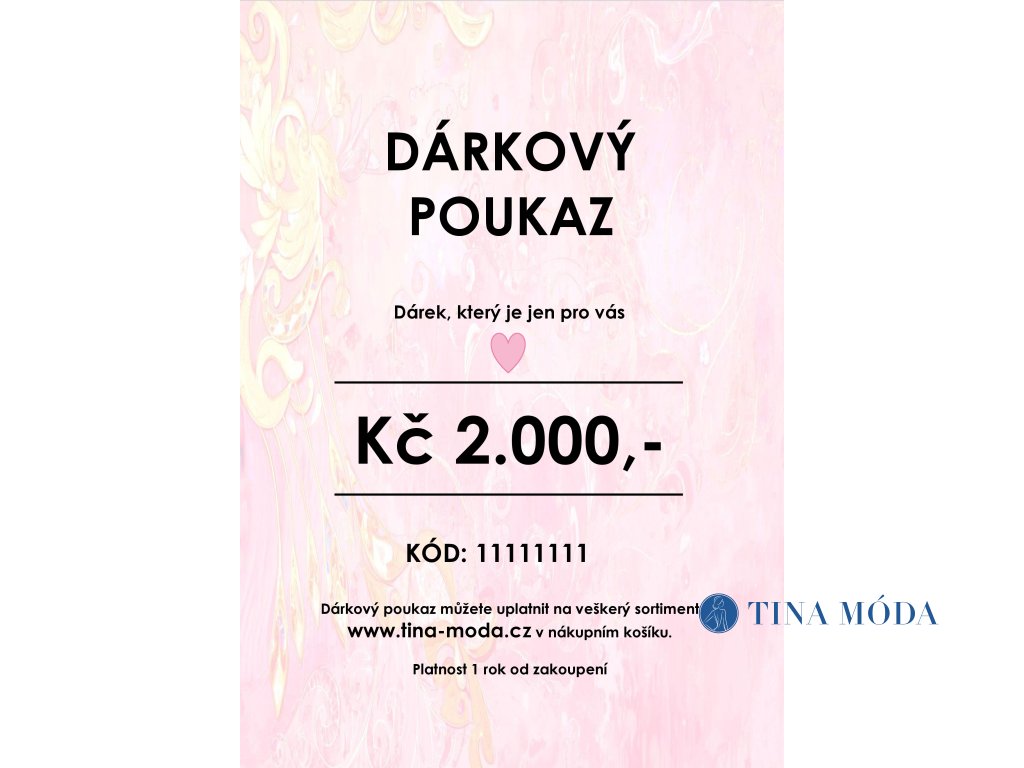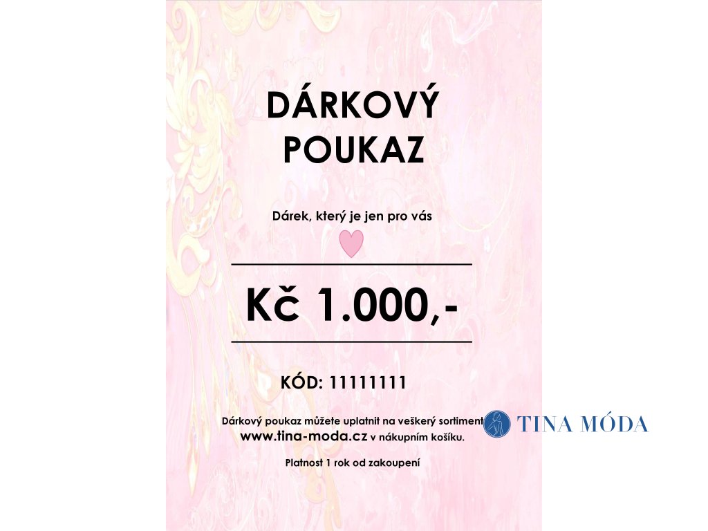 Nevíte si rady s drákem pro milovanou osobu nebo kolegyni a kolegu v práci, třeba k výročí, darujte dárkový poukaz a darujete radost. Dárkový poukaz Tina móda je skvělý dárek pro dámy i pány. Obdarovaný si vybere dárek dle svého stylu a poukaz uplatní v 1. kroku objednávky, kde zadá kód. Poukaz vám zašleme mailem tentýž den objednání. Pokud budete chtít na dárkový poukaz vložit váš osobní vzkaz, poděkování nebo přání ... postačí, když váš požadavek napíšete do poznámky ve 3. kroku objednávky dole pod fakturační adresou "Zadat poznámku pro prodejce". My se o vše postaráme, tak aby jste byli spokojeni. ❤️