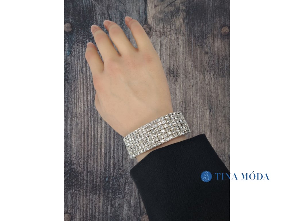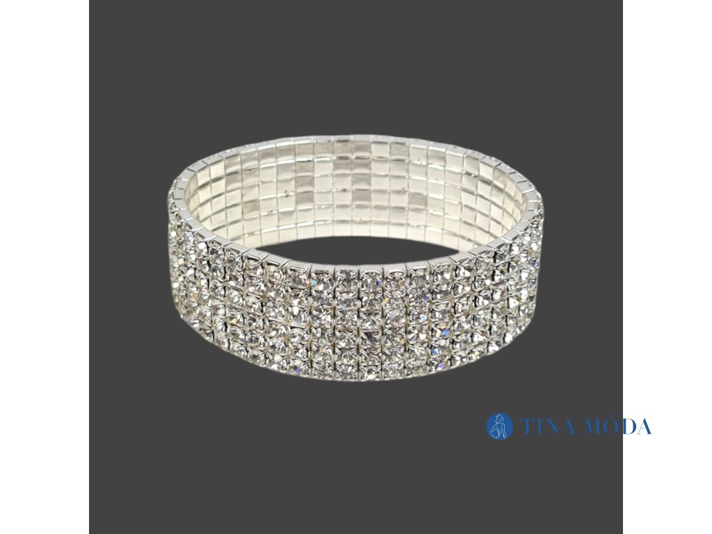 Elasticky štrasový stříbrný náramek se zirkony široký 6 řad
