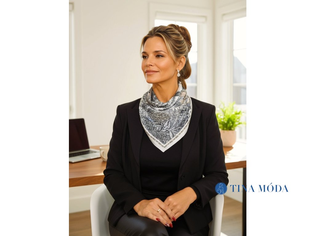 Elegantní a luxusní hedvábný šátek s černou PUMOU ze 100% pravé hedvábí