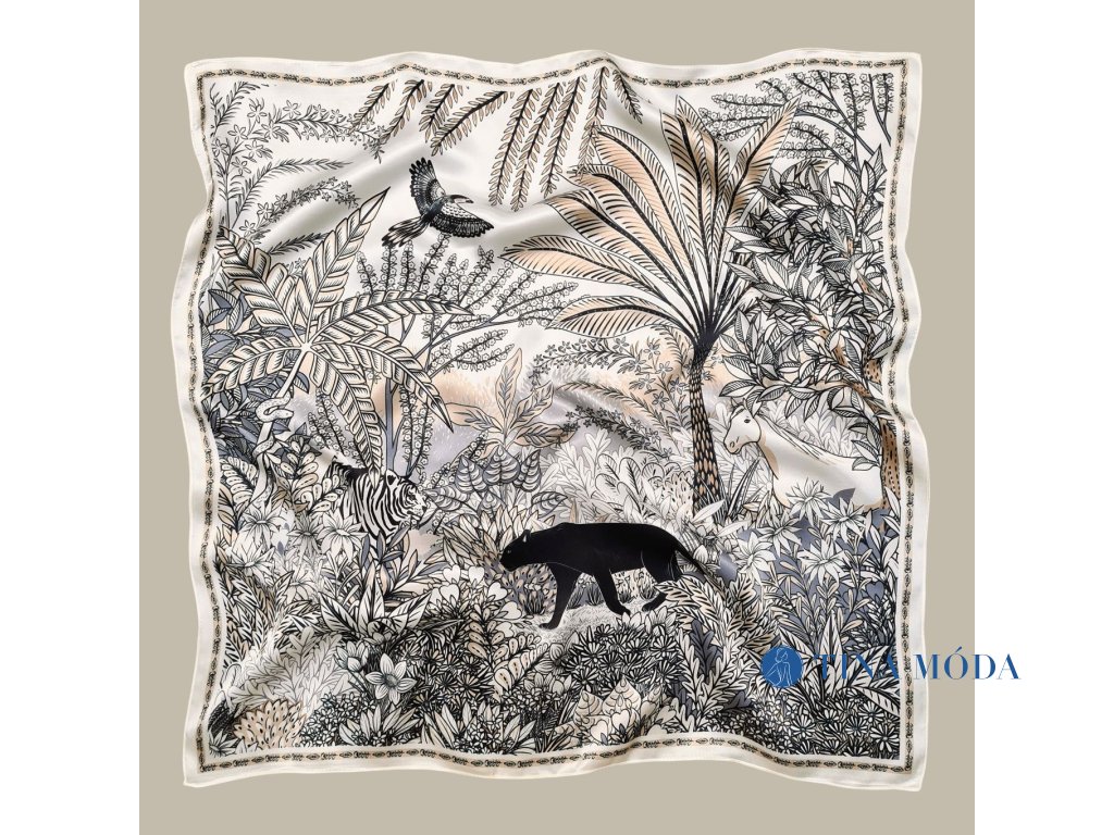 Dámský šátek z pravého hedvábí s motivem divoké džungle a bojovné pumy a tygra. Klidný kůň raději vše pozoruje z povzdálí. Zahalte se do pravého hedvábí a hedvábný svět máte u sebe. Vzorovaný šátek můžete nakombinovat k šatům, kabátu i saku. Lehce uvázat kolem krku různými způsoby i do vlasů ... fantazii se meze nekladou. Hedvábný šátek je příjemný na kůži a jemný na omak. V létě Vás ochladí, naopak v zimě zahřeje. Vlastnost přírodního materiálu. Praní viz. etiketa údržby.