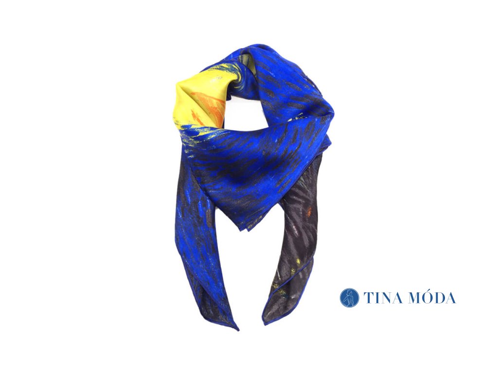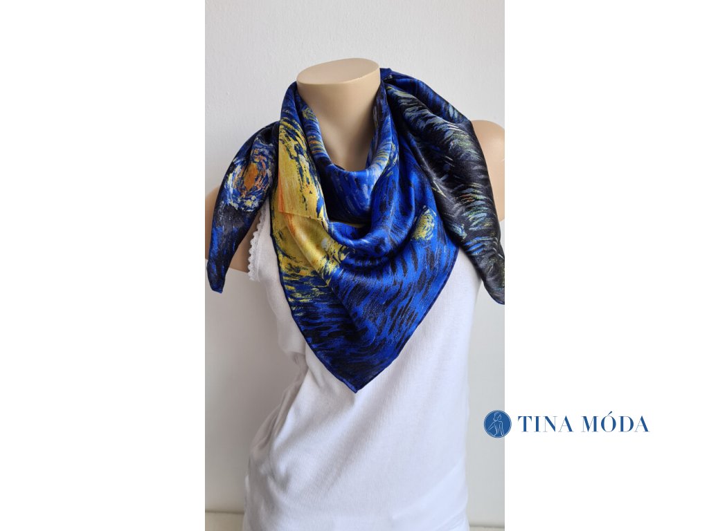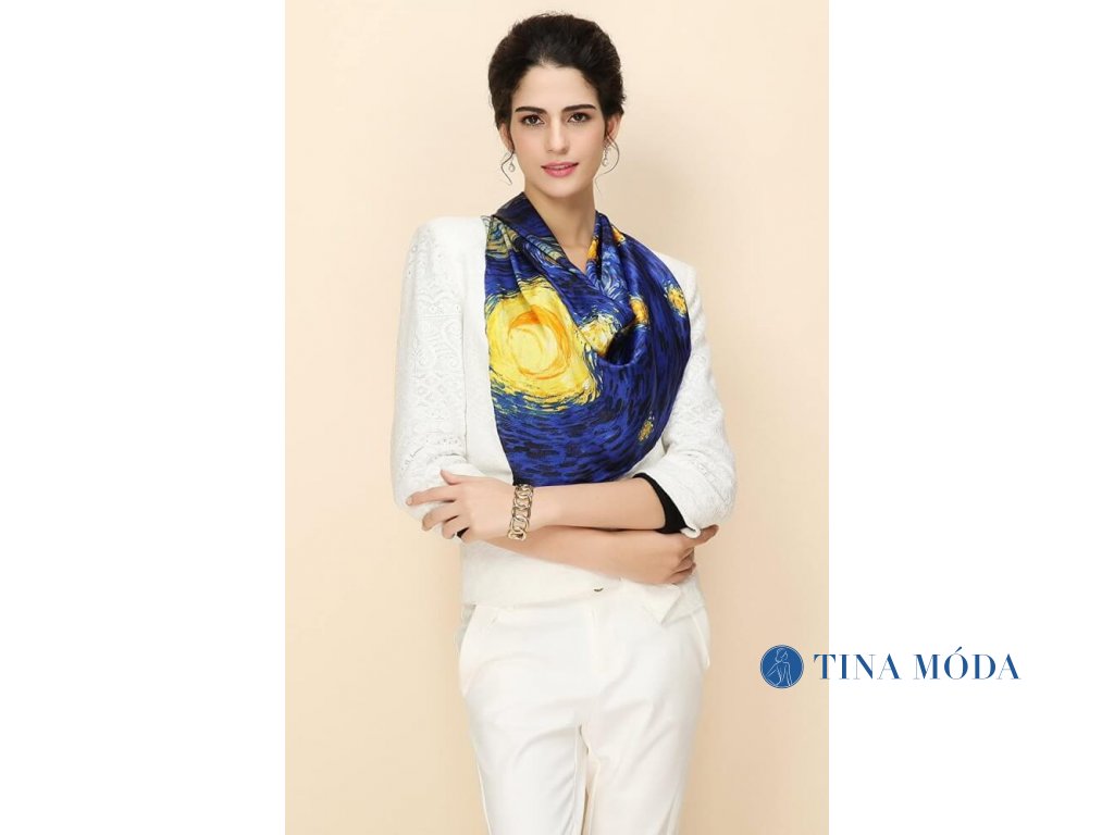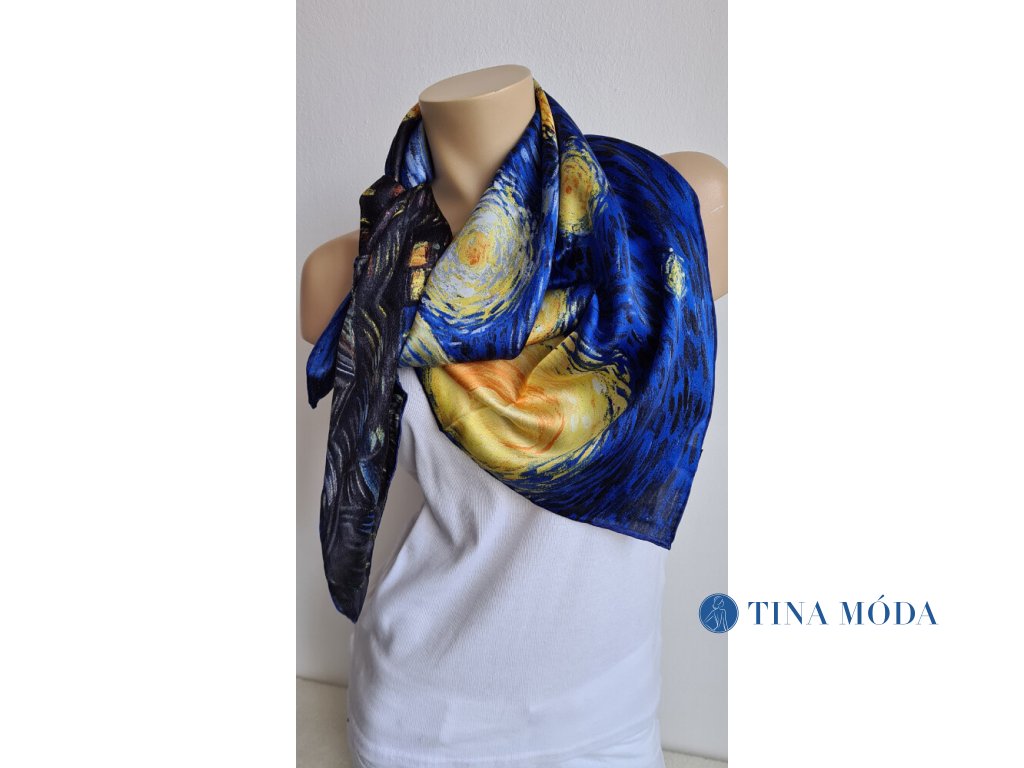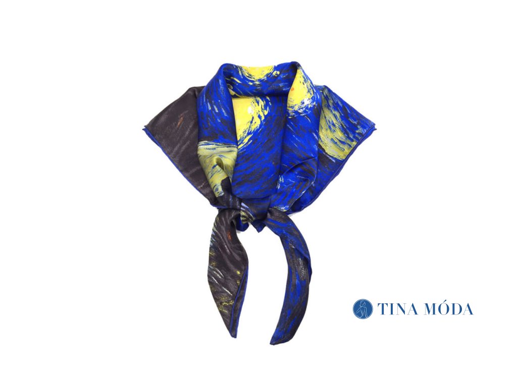 Luxusní jemný hedvábný šátek šála 100% čisté hedvábí Hvězdná obloha Vincent van Gogh - The Starry Night čtvercový modrý