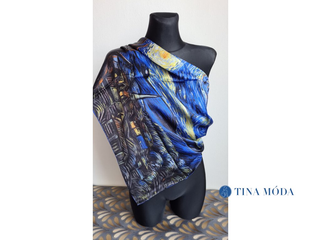 Hvězdná obloha Vincent van Gogh The Starry Night dámský hedvábný šátek šála 100% hedvábí