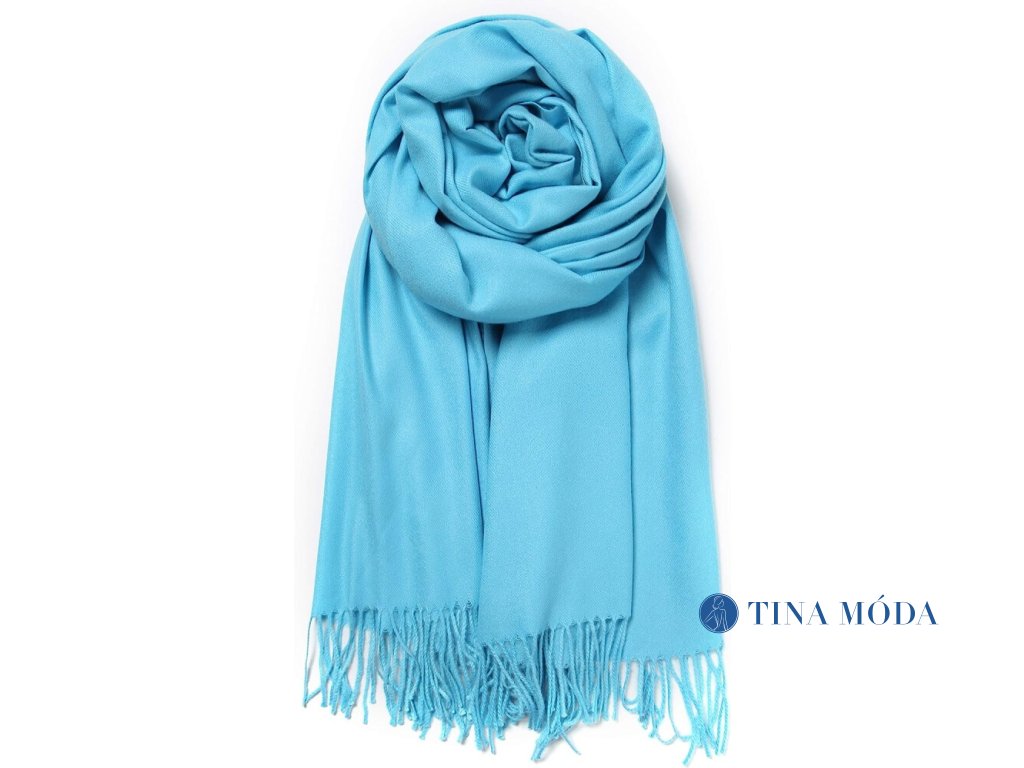 Kašmírová šála štola pléd přes ramena dámská pánská světle tyrkysová 30% kašmír pašmína