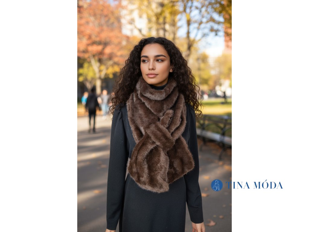 Jemná hnědá chlupatá šála, která vám dodá elegantní a zároveň slavnostní outfit. Šála / štola má kvalitní zpracování a vypadá jako pravá kožešina. Jednoduché propletení do poutka, aby držela tvar a krásně přilnula ke krku. Můžete nosit jako pléd přes ramena na šaty... libovolně. Praní viz. etiketa údržby.