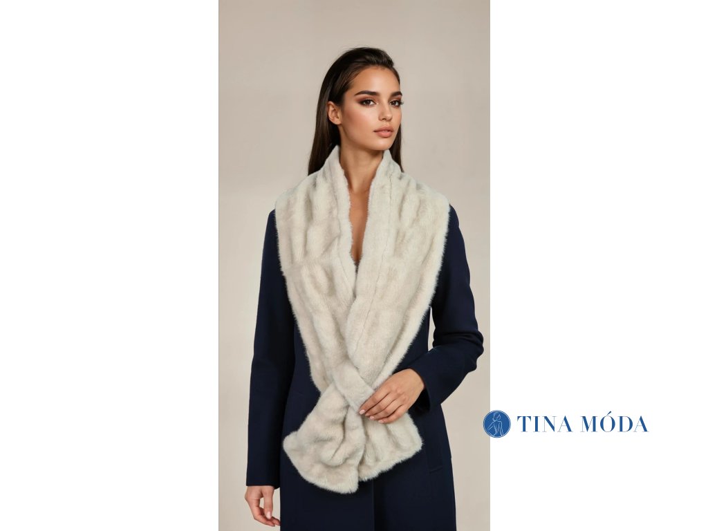 Jemná kožešina, která vám dodá elegantní a zároveň slavnostní outfit má světlou barvu. Šála / štola má kvalitní zpracování a vypadá jako pravá kožešina. Jednoduché propletení do poutka, aby držela tvar a krásně přilnula ke krku. Můžete nosit jako pléd přes ramena na šaty... libovolně. Praní viz. etiketa údržby.
