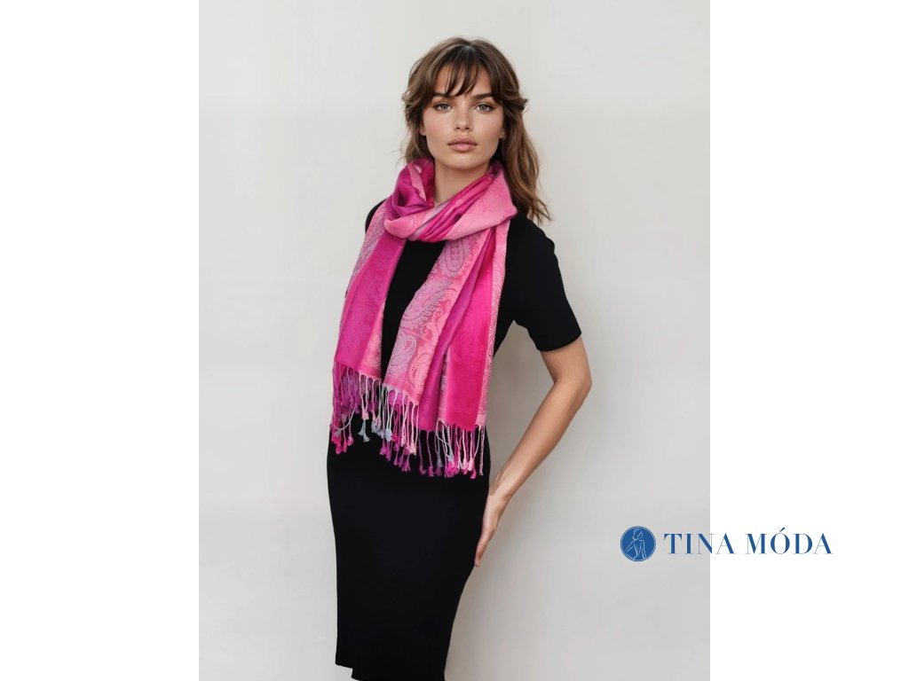 Elegantní lesklá šála s paisley vzorem v jasně růžovém odstínu
