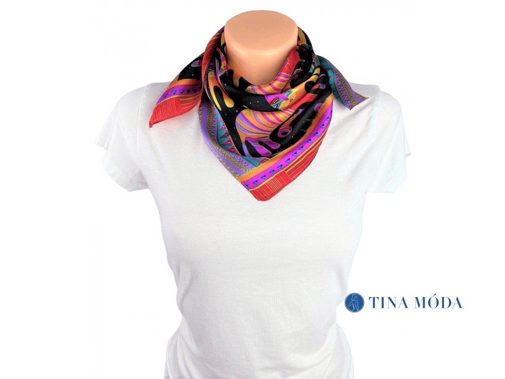 Vzorovaný šátek můžete nakombinovat k šatům, kabátu i saku. Lehce uvázat kolem krku, na kabelku nebo i jako pásek ... fantazii se meze nekladou. Hedvábný šátek je příjemný na kůži a jemný na omak. V létě Vás ochladí, naopak v zimě zahřeje. Vlastnost přírodního materiálu. Praní viz. etiketa údržby.