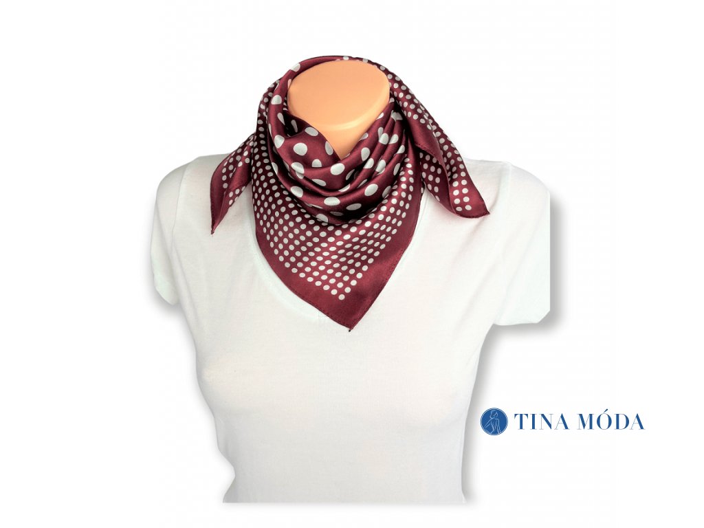 Elegantní šátek s klasickým puntíkovaným vzorem, kombinace větších a menších puntíků, které tvoří lem.