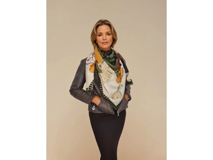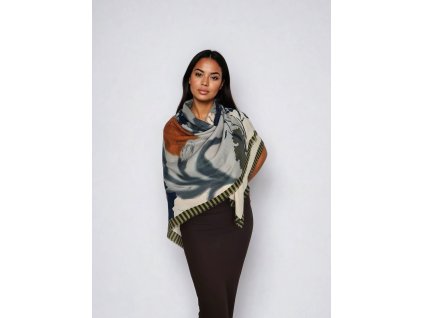Sladěné převážně studené tóny barev s krásným květinovým vzorem, který je doplněn paisley ornamenty, vše lemováno leopardím vzorem. Vzorovanou šálu můžete libovolně nakombinovat k šatům, kabátu i saku a džínám. Lehce uvázat kolem krku, jako přehoz / pléd přes ramena ... fantazii se meze nekladou. Materiál je na kůži velice příjemný. Praní viz. etiketa údržby.