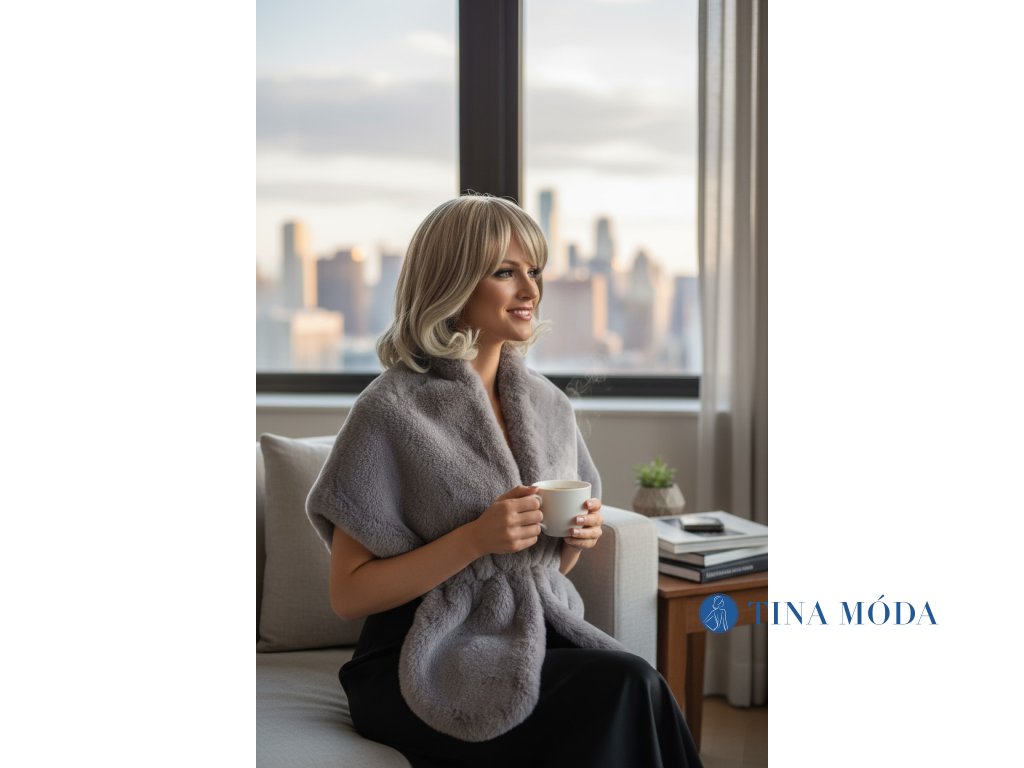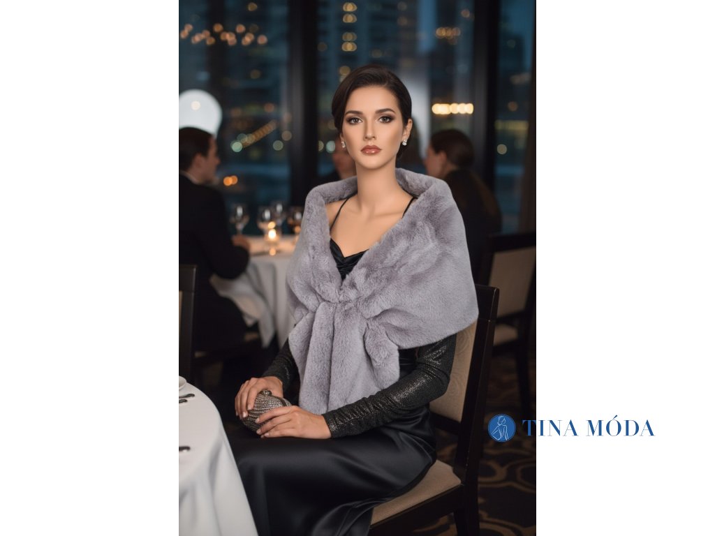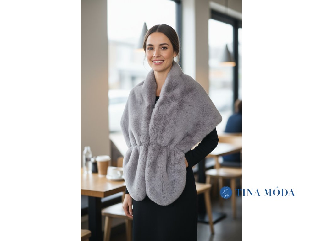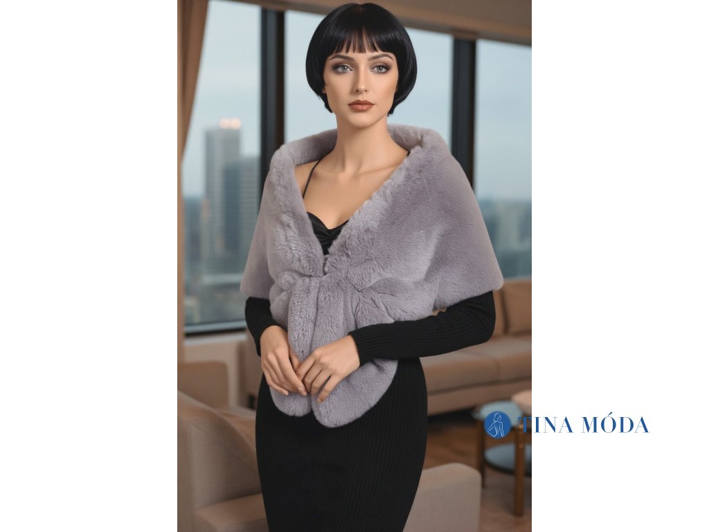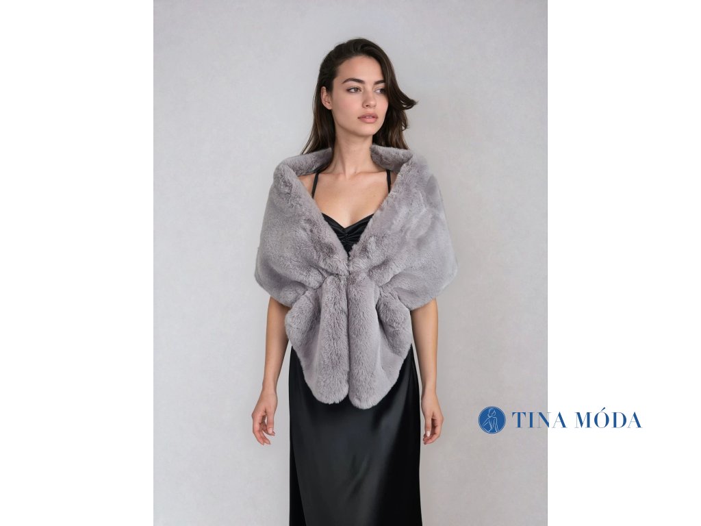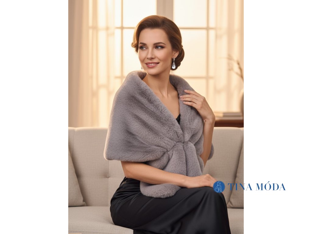 Jemná šedo-stříbrná chlupatá štola, dodá vám elegantní a zároveň slavnostní outfit. Šála / štola má lehké řasení ke konci cípů a háček na uchycení, aby držela tvar. Šála má saténovou podšívku ve stejné barvě. Můžete nosit jako pléd přes ramena na šaty... libovolně. Praní viz. etiketa údržby.