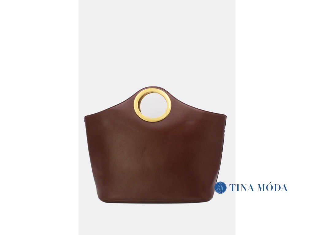 Skořicově hnědá elegantní kabelka se zlatými kruhy a proplétané kůže Tom & Eva