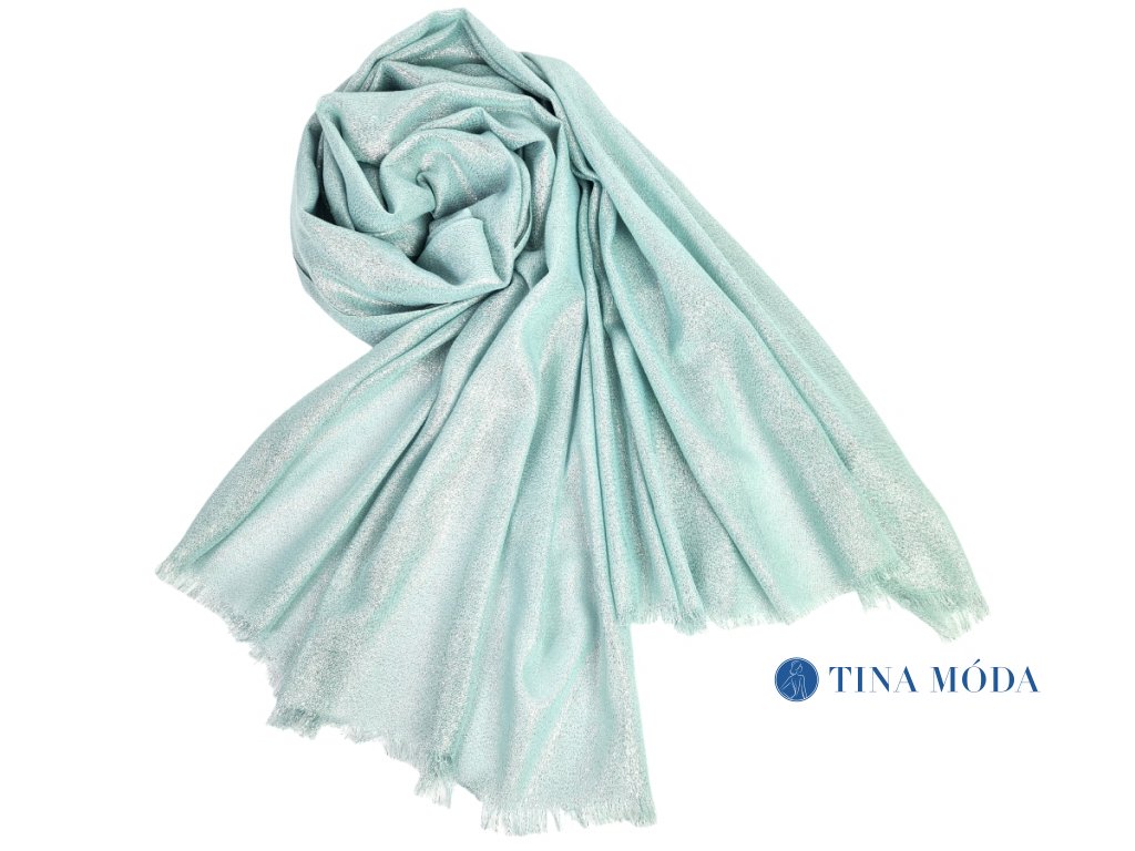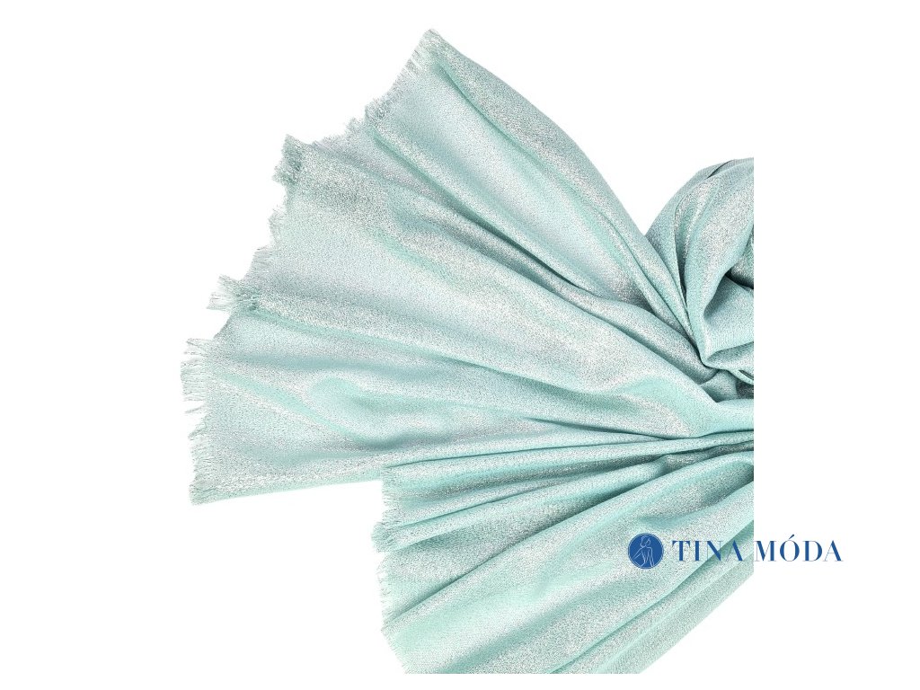 Slavnostní světle zelena vodní šála se stříbrnou nití, pléd přes ramena na šaty, štola na silvestra, party