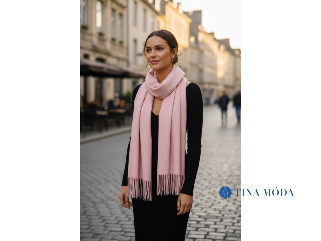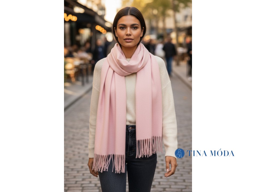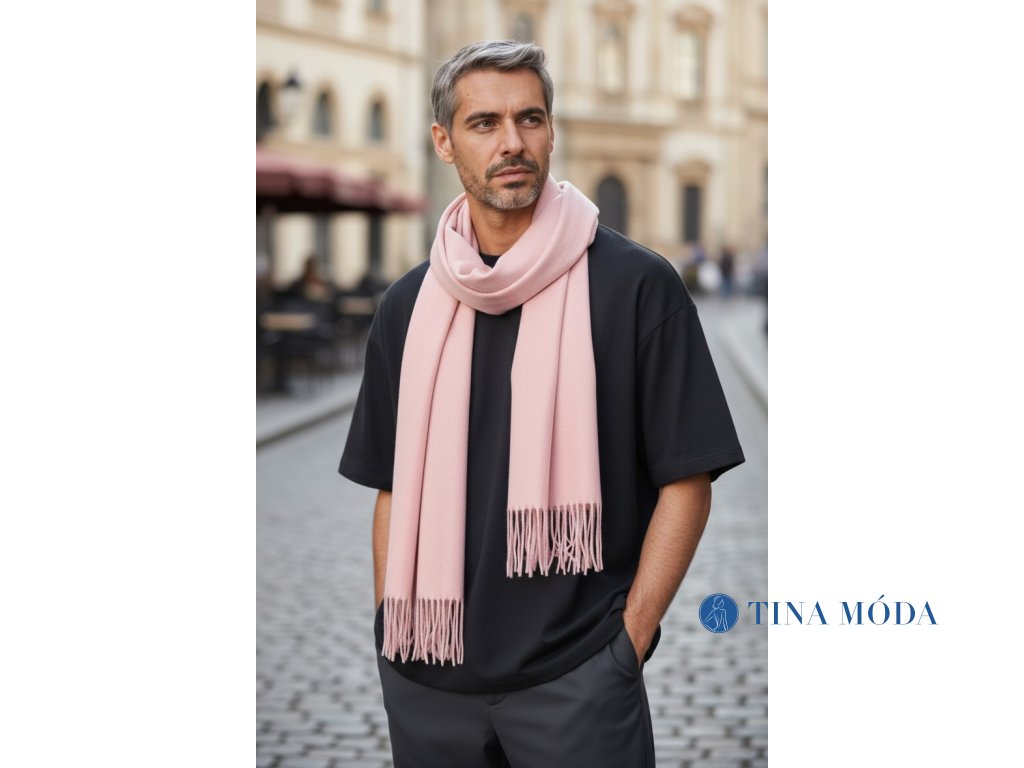 Světle růžová kašmírová šála s vlnou jednobarevná unisex dámská / pánská