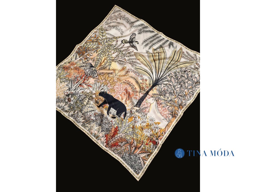 Dámský šátek z kvalitního Twill hedvábí se strukturovanou vazbou a decentním leskem vám dopřeje luxus. Šátek má moderní a zajímavý vzor s motivem přírody fauny a flory. Buďte za dámu, zahalte se do přírodních materiálů a dodejte si šarm.