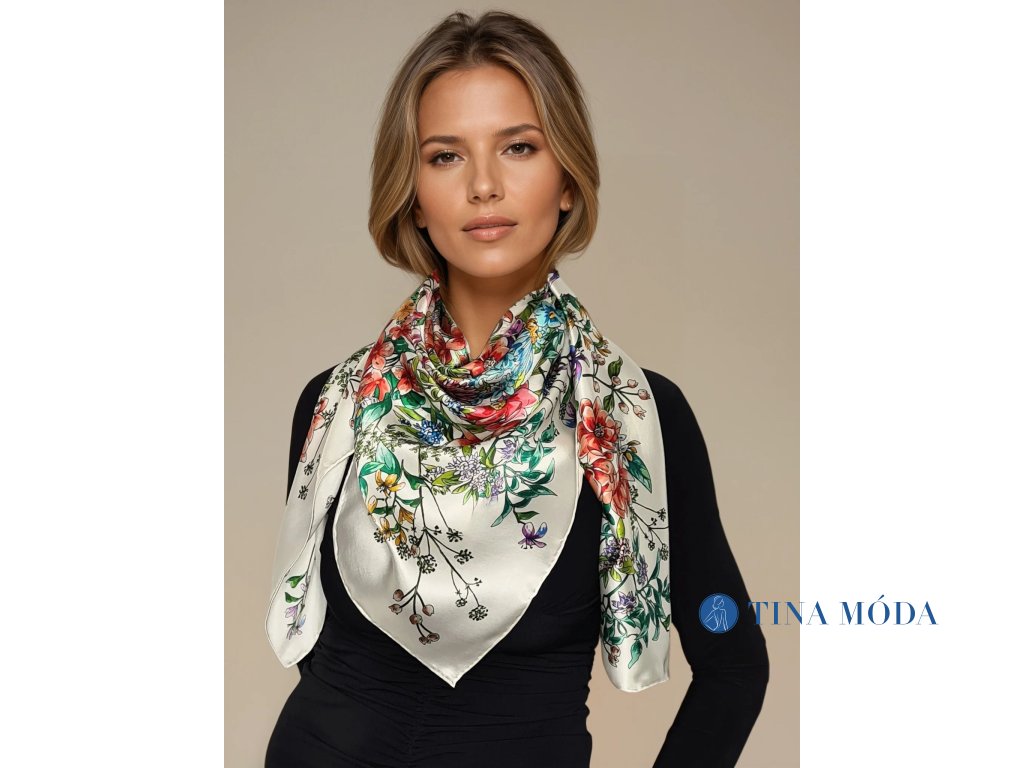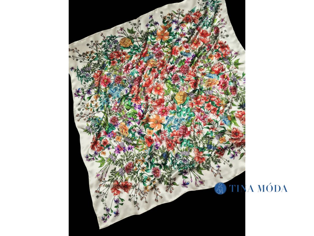 Elegantní a luxusní hedvábný šátek KYTICE, čtvercový XXL 110 cm 100% pravé hedvábí