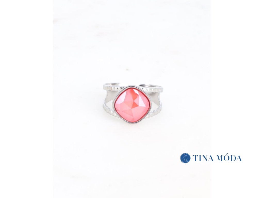 Dámský tepaný stříbrný prsten s korálově růžovým krystalem